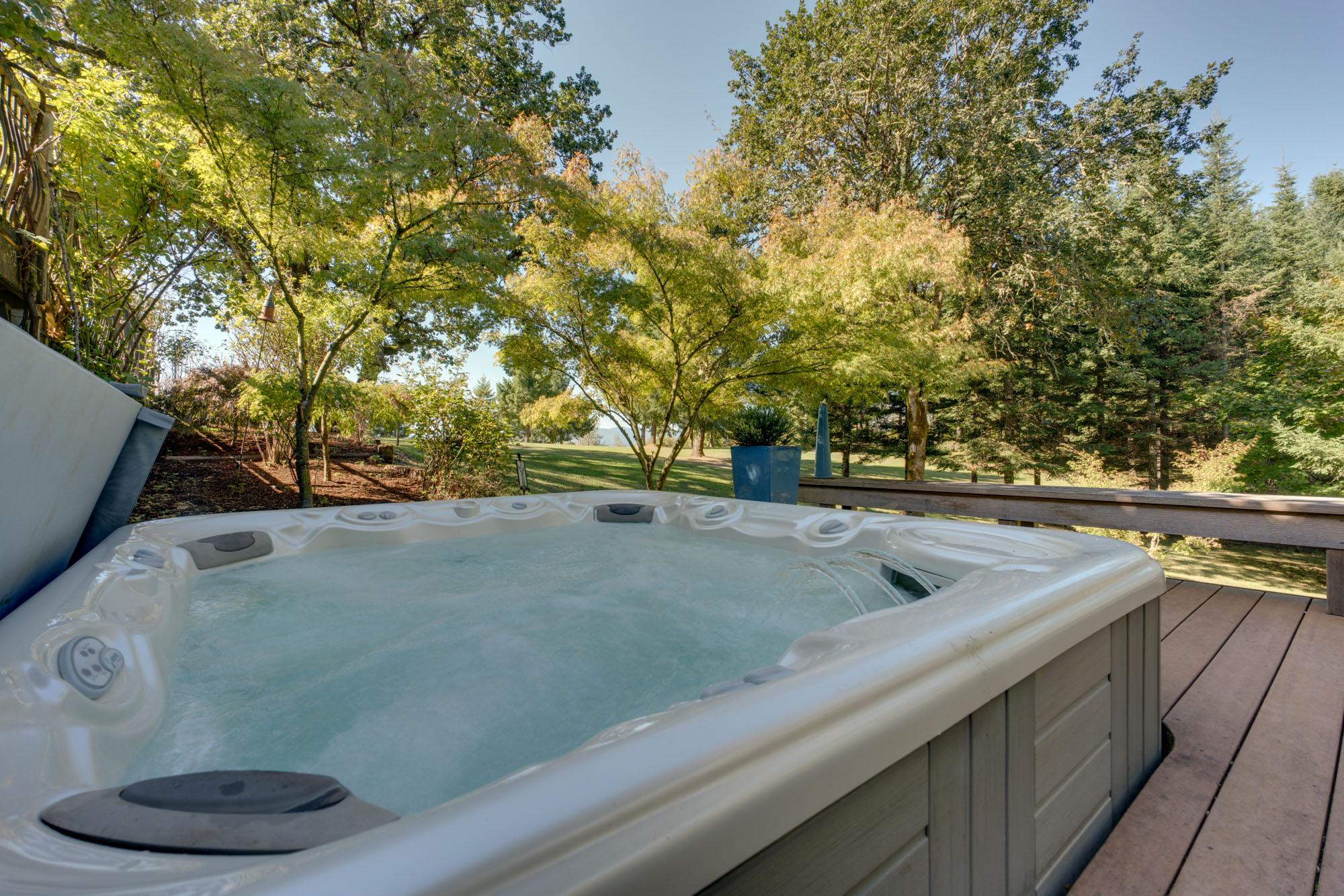 Don’t miss this amazing opportunity in Oregon’s beautiful wine country! Set back on 15 acres amongst the vineyards and wineries of Carlton, this property is a private retreat. Custom Arts and Crafts architecture is featured throughout the home, seen in the gorgeous exposed wood beams, river rock, stone and brick fireplaces, and built-ins galore. You will feel like you’re on vacation year-round!